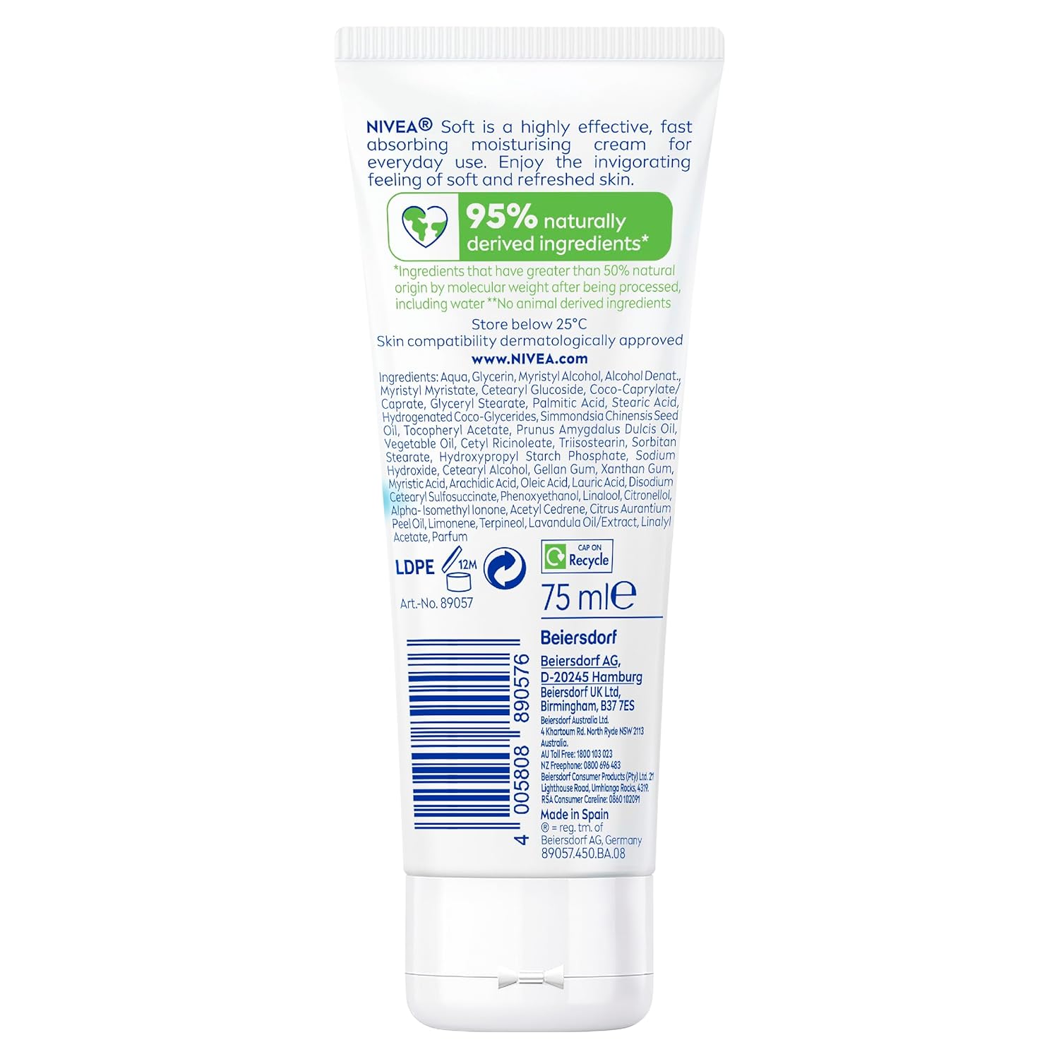 ترطيب منعش: كريم نيفيا سوفت هو كريم مرطب خفيف الوزن يوفر ترطيبًا فعالًا ومنعشًا لجميع أنواع البشرة.